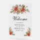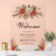 Amaze your guests with this elegant wedding welcome sign featuring beautiful red poinsettia flowers and rustic pine leaves.
