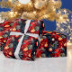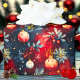 A festive Christmas pattern featuring red and gold ornaments, winter berries, pine branches, and delicate snowflakes on a deep blue background. Rich painterly textures and warm holiday tones create an elegant, timeless look perfect for wrapping sophisticated Christmas gifts.