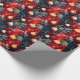Red Gold Christmas Ornaments on Deep Blue Pattern Wrapping Paper