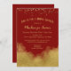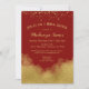An elegant red and gold bridal shower invitation featuring gold glitter confetti at the top and gold bling at the bottom.