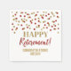 Happy Retirement napkins with red and gold glitter confetti pattern.
