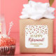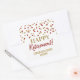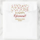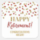 Happy retirement favour tag sticker with red and gold confetti pattern.