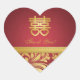 Red & Gold Damask, Chinese Double Happiness Heart Sticker