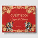 Red and gold elephants Indian wedding personalized guest book . Classical traditional Hindu wedding guest book