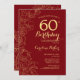 Red Gold Floral 60th Birthday Party Invitation