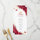 Red, gold and white Quinceanera celebration slim double sided program and menu card. Features, script font, gold butterflies, watercolor roses and tiara. Perfect for an elegant princess style glam celebration. Personalise with your own details.