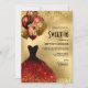 Red Gold Glitter Tiara Dress Sweet 16 Birthday Invitation