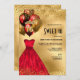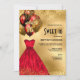Red Gold Glitter Tiara Dress Sweet 16 Birthday Invitation