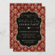 Red & Gold Heart Damask Valentine's Dinner Party Invitation