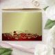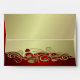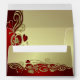 A modern and romantic illustration with an elegant red and gold coloured background. The left side has a decorative scroll with red hearts along it. Designed to be a romantic wedding theme but is beautiful as a stand alone design.
