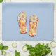 Red & Gold Hibiscus Flower Flip Flops on Lt Blue Tea Towel