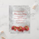 Christmas Holiday Party Invitation. Elegant gold & red holly leaf baubles with gold sparkle glitter on a silver snowflake background. Please Note: All flat images!
