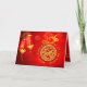 Traditional Chinese lanterns on which are "drawn" Horse ideogram, 2026 (original handwritting) and "Happy New Year" in Chinese on red background with fireworks + Golden paper-cut of a horse into a circle with greeting in English around it. Design on horizontal standard greeting card with the same background inside the card + wishes to personalize. Matching holidays postcard, invitations, craft supplies, party supplies and more soon... Perfect for Chinese New Year of the Horse 2026.