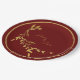 Red Gold Leaf Elegant Name Script Wedding Paper Plate