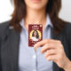 Red Gold Leaf Plastic Badge - Vertical to identify all the members of your production team. You can personalise it with a photo, a logo, and text. The badge measures 2.13 inches x 3.38 inches and is made of PVC Plastic which makes this ID Badge durable, and it won't fade or tear.