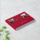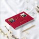 A red background, gold foil text. Personalise and add 2 photos, your name, class of, and school name. Decorated with a laurel wreath, and a cap.