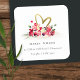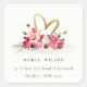Red Gold Orchid Heart Floral Watercolor Address Square Sticker