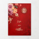 This elegant bilingual Chinese wedding invitation features a round gold double happiness symbol and peony flowers on a ruby red shimmering background. Bride and groom names in an elegant handwritten script. Chinese wedding invitation or tea ceremony invitation. With your photo in the centre of the tri-fold wedding invitation and a traditional Chinese text at the right inner side. At the backside are the details and a scannable qr code for your wedding website.