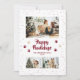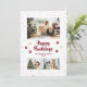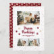 Modern red and gold photo Christmas card featuring three photos, snow and paw prints on the front and a paw prints background at the back. Easily personalize this cute photo Christmas card with your photos, family name and the year.