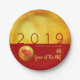Original party paper plate for The Chinese New year of the Pig 2019. Golden and transparent background with red Chinese papercut of a pig into a golden circle + customisable texts (in front and back). You can easily change texts (font, colour, size and position) and background colour (here dark red) by clicking the customise button. Matching paper napkin, craft products, invitations, greeting card and more...Perfect for Chinese New year of the Pig 2019.--- "The Pig (豬) is the twelfth and the last sign of the Earthly Branches (亥). In the continuous Sexagenary cycle, every twelfth year corresponds to Hai, and is commonly called "the Year of the Pig" (豬年). There are five types of Pigs, named after the Chinese elements. In order, they are: Metal, Water, Wood, Fire, and Earth.