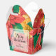 Red and gold poinsettias and leaves surround these floral Christmas take out style favour gift boxes with your message in chic text on the front. Perfect to package your holiday party favours, business gifts, corporate gifts and more. More boxes, 4 sizes of GIFT BAGS and tissue paper created for you in our store. MATCHING items in our store.