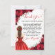 Express your gratitude with elegance using these custom Quinceañera thank you cards. Featuring a beautiful girl in a vibrant red gown surrounded by lush red roses and gold glitter confetti, this card perfectly captures the joy of your sweet 15 celebration.