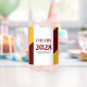 Colleges, universities, high schools, and institutes of higher learning can add sophistication to graduation merchandise with this modern, contemporary can glass design, which features elegant lettering set on royal red, gold, and white backgrounds. Customise with name of school/college/university and academic logo/motto/seal. Colours and font types can be modified as desired. Reverse shows identical design.