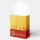 Modern design with golden textured paper (printed image) with vertical golden Chinese wishes + large 2025 in red + small Snake paper cut-out with yellow texts HAPPY NEW YEAR and Year of the Snake onto a red background. Design on tent favour box. You can easily change texts by clicking the customise button. Matching greeting card, holiday postcard and more soon... Perfect for a timeless and modern Chinese New Year of the Snake 2025.