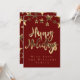 Christmas Red with Gold Look Stars Pattern Modern Script Happy Holidays Elegant Christmas Card