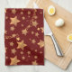 Red Gold Stars Pattern Elegant Merry Christmas Tea Towel