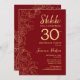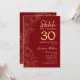 Red Gold Surprise 30th Birthday Invitation. Minimalist modern feminine design features botanical accents and typography script font. Simple floral invite card perfect for a stylish female surprise bday celebration.