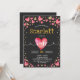 Vibrant red & gold Valentine's Day themed 1st birthday invitation on charcoal / chalkboard background