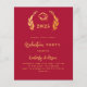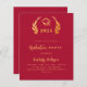 Red background. A classic laurel wreath and a graduation cap. Personalise and add the year, name and details. Golden text.