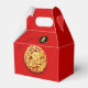 Composition with golden traditional Chinese paper-cut of a Rabbit into a decorated circle + small modern lettering for Year of the Rabbit 2023 and Chinese rabbit Ideogram Symbol onto a small black circle. Design on gable favour box + Business name and address to customise with red background. Available in cube, tent and take-out favour boxes. Matching greeting card, holiday postcard, invitation, party supplies and more. Perfect for Chinese New Year of the Rabbit 2023 or birthday (people born in Rabbit Year).