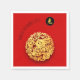 Composition with golden traditional Chinese paper-cut of a Rabbit into a decorated circle + small modern lettering for Year of the Rabbit 2023 and Chinese rabbit Ideogram Symbol onto a small black circle. Design on party paper napkin with red background. Matching paper plate and cup, greeting card, holiday postcard, invitation, party supplies and more. Perfect for Chinese New Year of the Rabbit 2023 or birthday (people born in Rabbit Year).