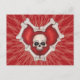 Red Gothic Heart With Bones White Skull on Lines Postcard