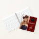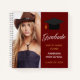 This elegant senior photo graduation guest notebook features chic white script next to your high school or college graduate photograph for the senior class of 2025. Customise with your name and class under the lovely calligraphy and have all of your friends autograph this guestbook for a great keepsake. Features a white grad cap on a burgundy red and gold guest book.