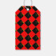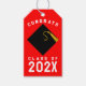 Classic graduation congratulations gift tags for grad party favours featuring black cap with gold tassel on red background. Edit text to add year.