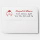 Personalized graduation envelope in red color theme. It's designed with a return address on the back flap and a cap and laurel logo with your class year inside. It has an inside color to match. Other colors available.