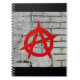 Red graffiti "spray paint style" anarchy symbol on cracked white paint wall background