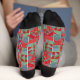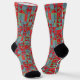 Red, gray, green geometric pattern. socks