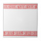 Ceramic tile with a Grecian frieze design. You can customise this ceramic tile with any text of your choice. Should you require any help with customising then contact us through the link on this page. You can have this ceramic tile in any colour you want. Just select your preferred colour from the menu. Red Grecian frieze pattern ceramic tile