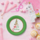 Red, Green, and Gold Art Merry Christmas Tree Paper Plate