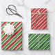 Red, Green and Silver Christmas Stripes Wrapping Paper Sheet