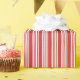 Custom gift wrapping paper rolls in the colours of a candy cane, red, green and white. Great for party decor.