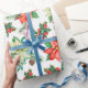 Red Green Berries Poinsettia Floral Christmas Wrapping Paper