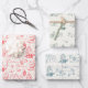 This cute Christmas holiday wrapping paper features a set of 3 different designs of wrapping papers with toile de Jouy inspired illustrations including: