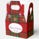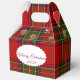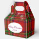 Pretty favor box in a fun red and green Christmas Plaid with lace snowflakes. Personalize text to read anything you like.