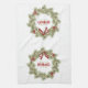 Red Green Christmas Wreath Custom Name Holiday Tea Towel