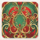 Beautiful Red Green Floral Christmas Holiday Paper Coaster